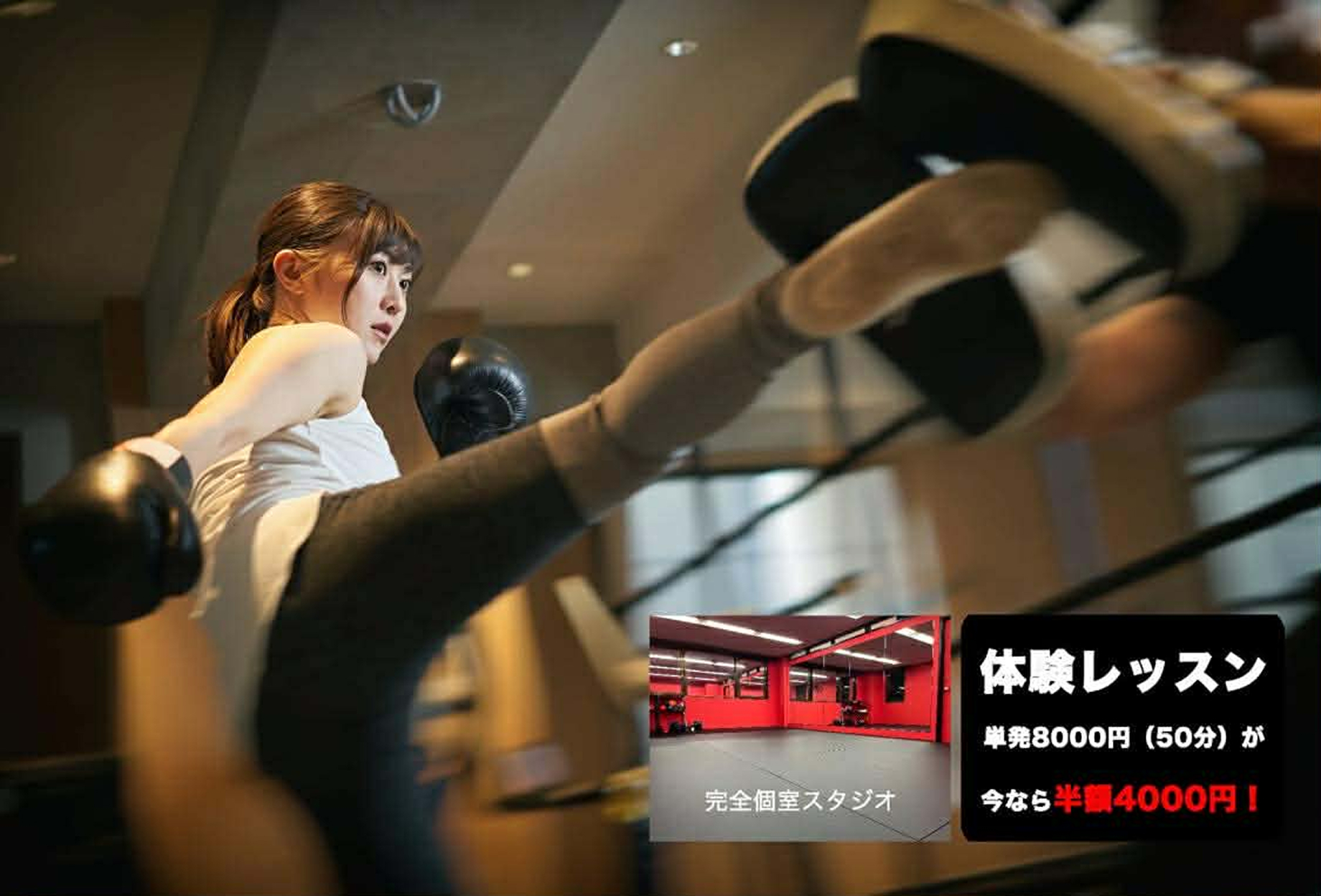 完全個室スタジオで行いますので未経験の方や女性の方も人目を気にせず集中してトレーニング出来ます。